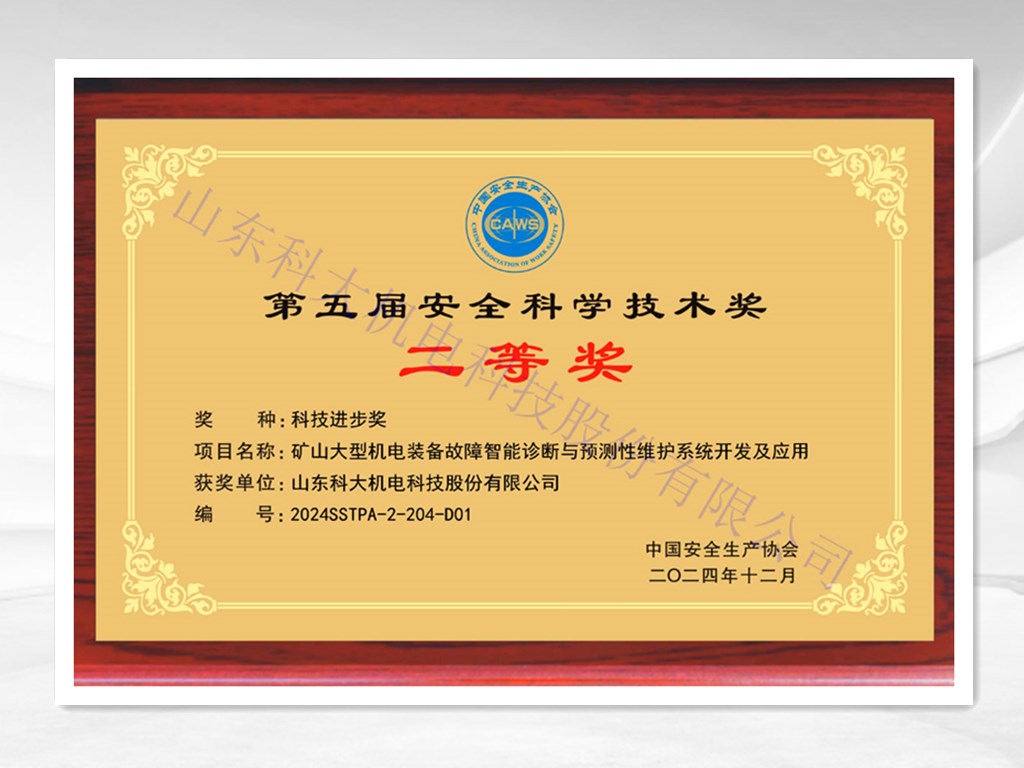12月,公司“矿山大型机电装备故障智能诊断与预测性维护系统开发及应用”项目,被中国安全生产协会评选为第五届安全科学技术奖“科技进步奖”二等奖;