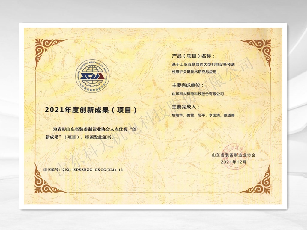 12月,公司入选山东省装备制造业协会副会长单位,董事长包继华荣获“山东省装备制造业2021年度优秀企业家称号”,公司“基于工业互联网的大型机电设备预测性维护关键技术研究与应用”项目获评“山东省装备制造业2021年度优秀创新成果”。